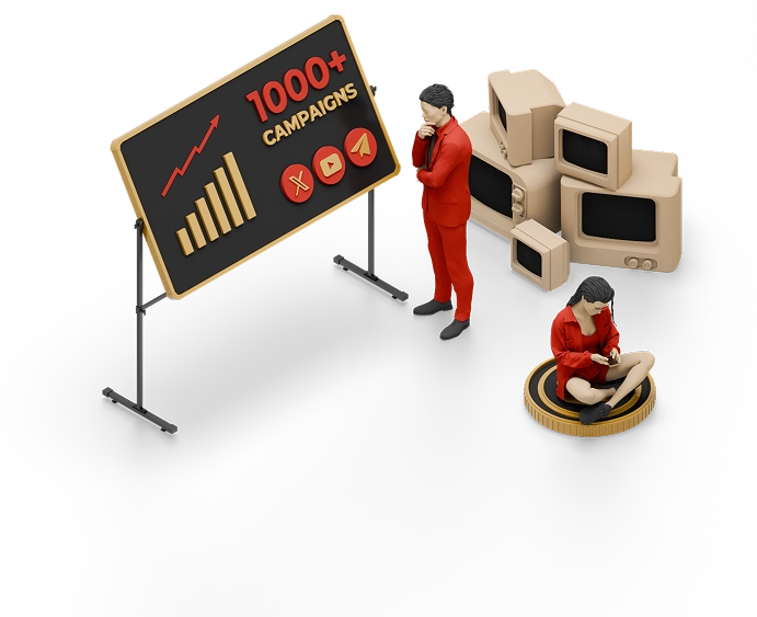 We’ve successfully executed over 1000 campaigns across YouTube, Telegram, and X (Twitter), helping projects build momentum and credibility in competitive markets. From awareness-driven pushes to conversion-focused launches, we know how to project